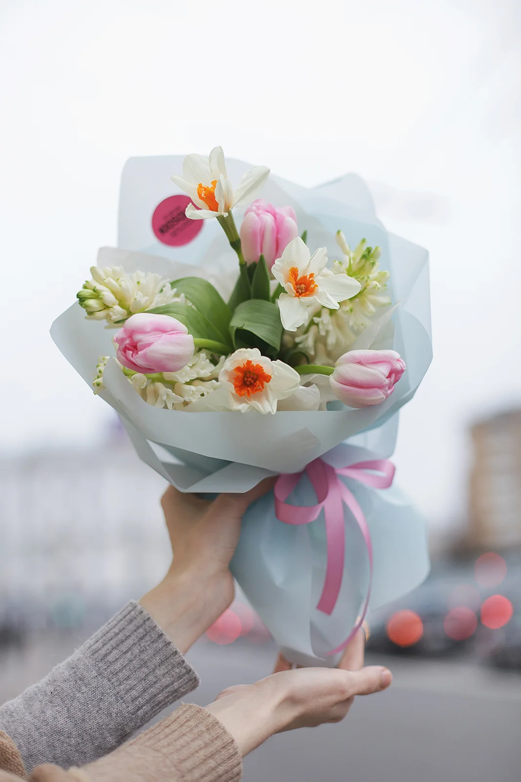 Весенний микс из гиацинтов, тюльпанов и нарциссов