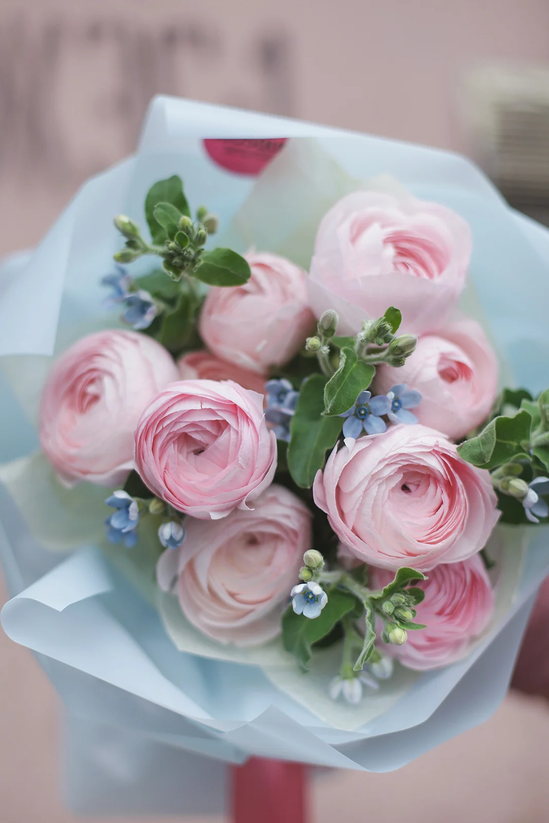 Твидия любит прохладную воду. Ранункулюсы — короткий стебель и частый срез. Базовое правило: не ставьте на солнце и меняйте воду раз в 2 дня.