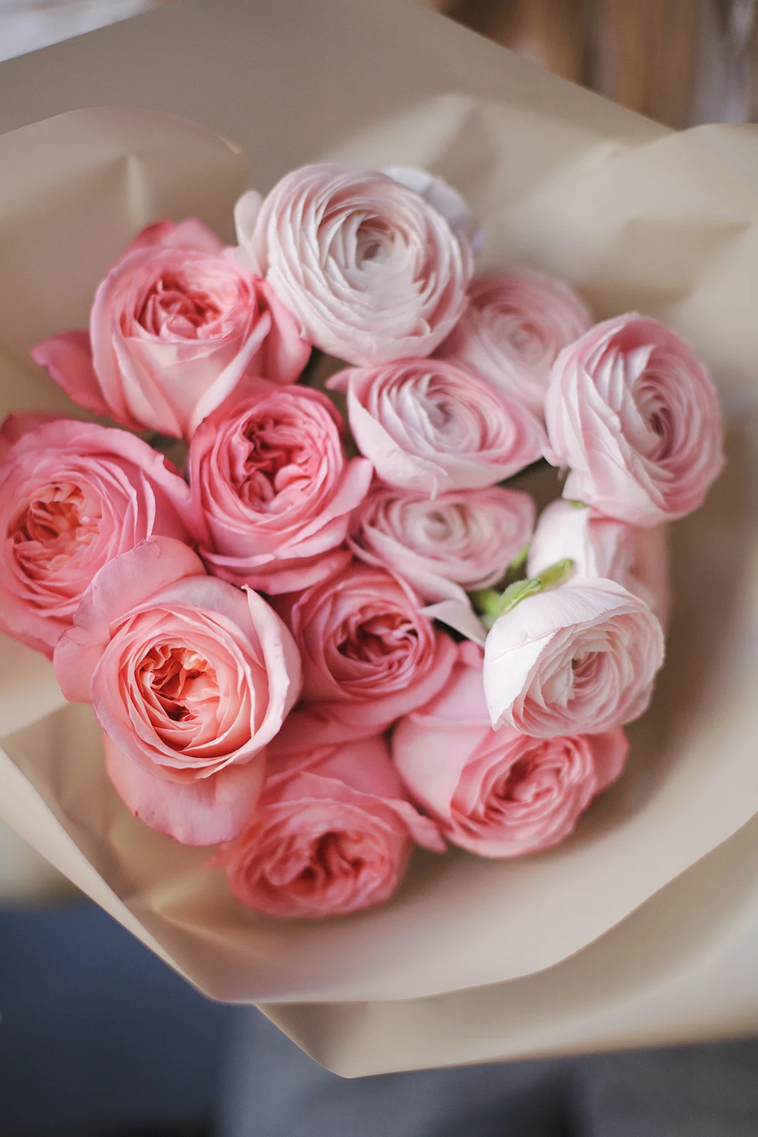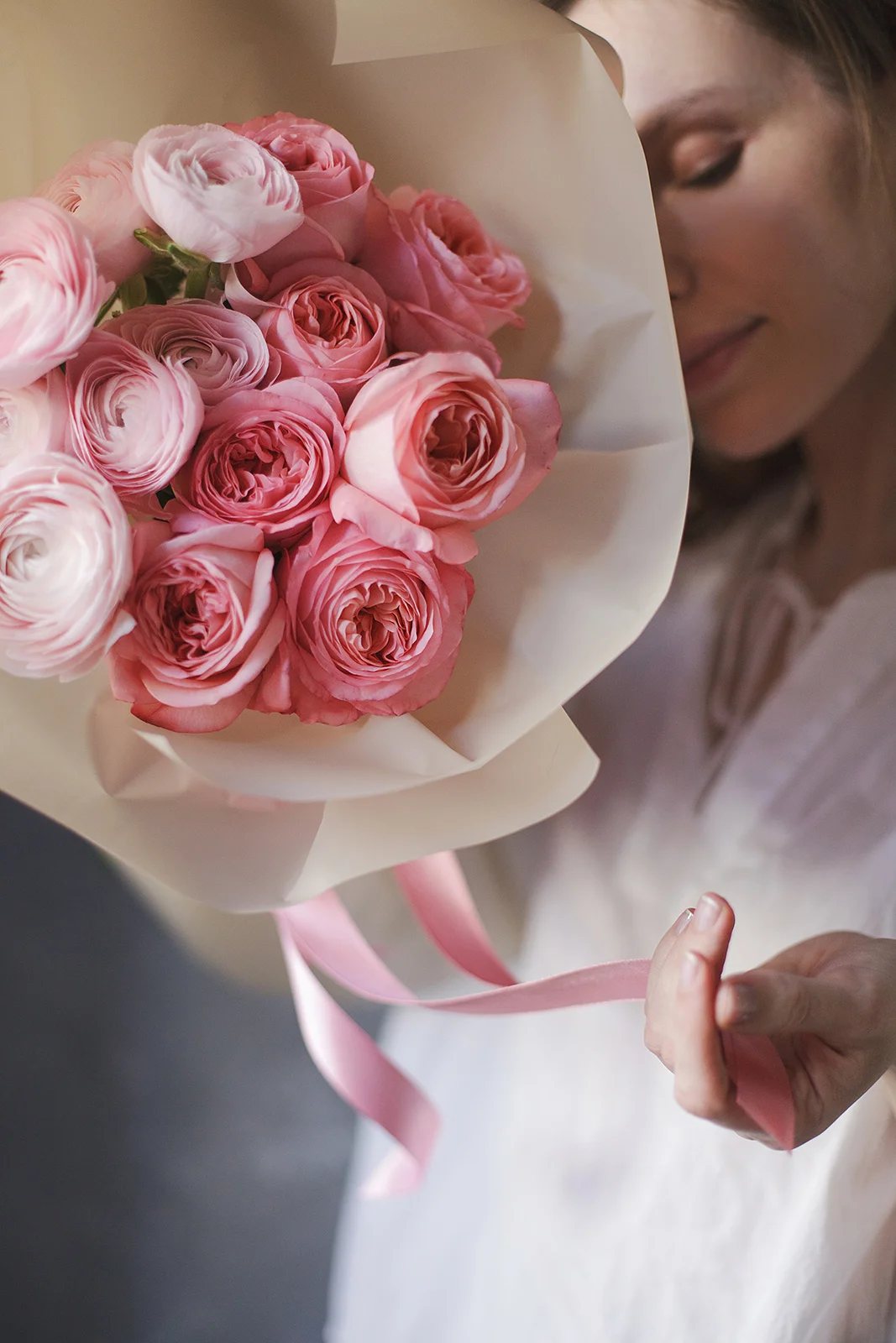 Дуо букет из Ранункулюсов и нежных пионовидных роз Пинк Экспрешн, один из самых любимых в нашей коллекции. Он красив и универсален. Букет идеально подойдет как для поздравления с днем Влюбленных или другим важным и праздничным событием, так и просто для поднятия настроения в любой день.