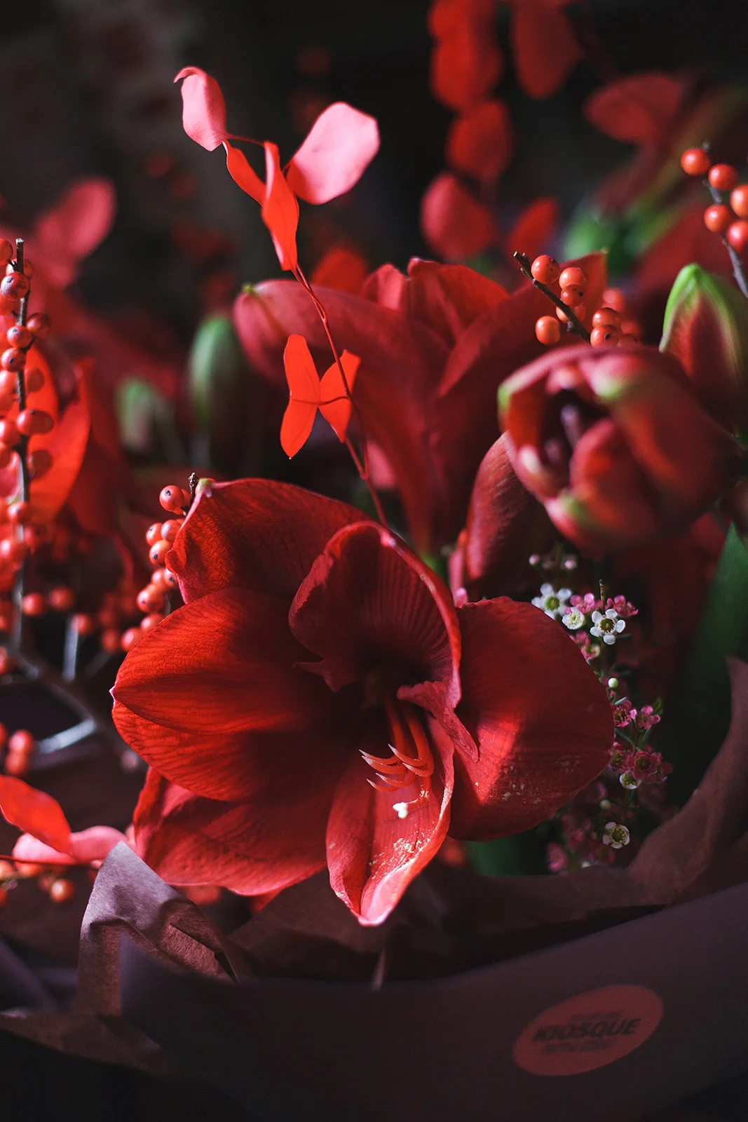 Букет с Амарилисом и ягодами Илекса