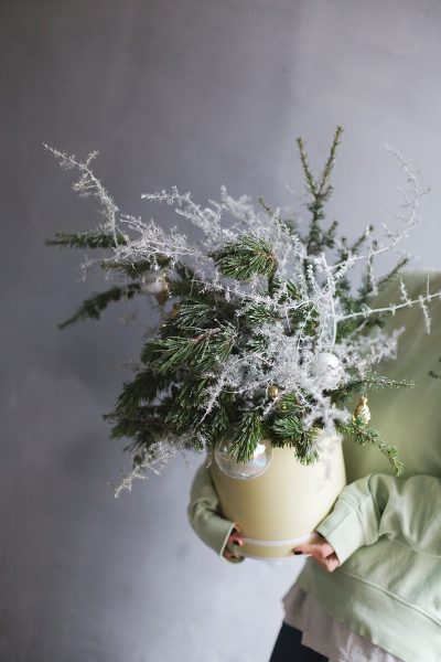 Не требует ухода и будет радовать Вас долгое время. Изготовить новогоднюю композицию мы можем в любой цветовой гамме. Все Ваши пожелания по декору вы можете обсудить с нашими флористами при оформлении заказа.