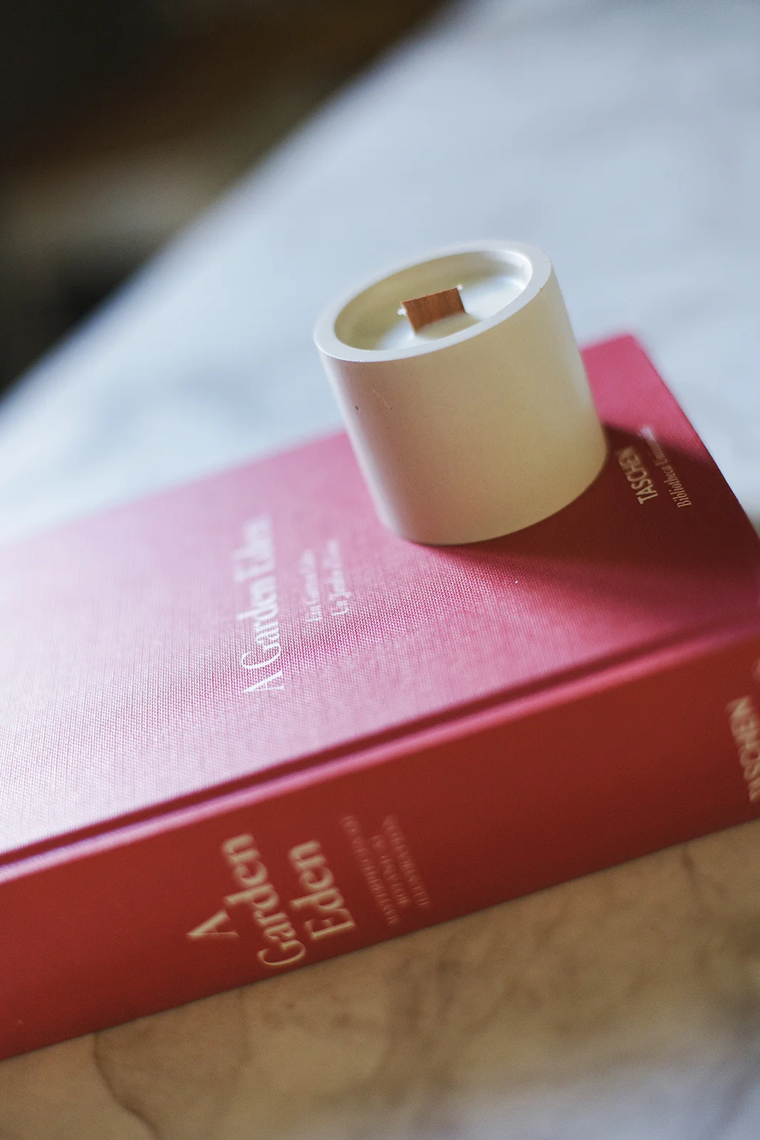 Соевая свеча «Библиотека» в гипсовом кашпо.