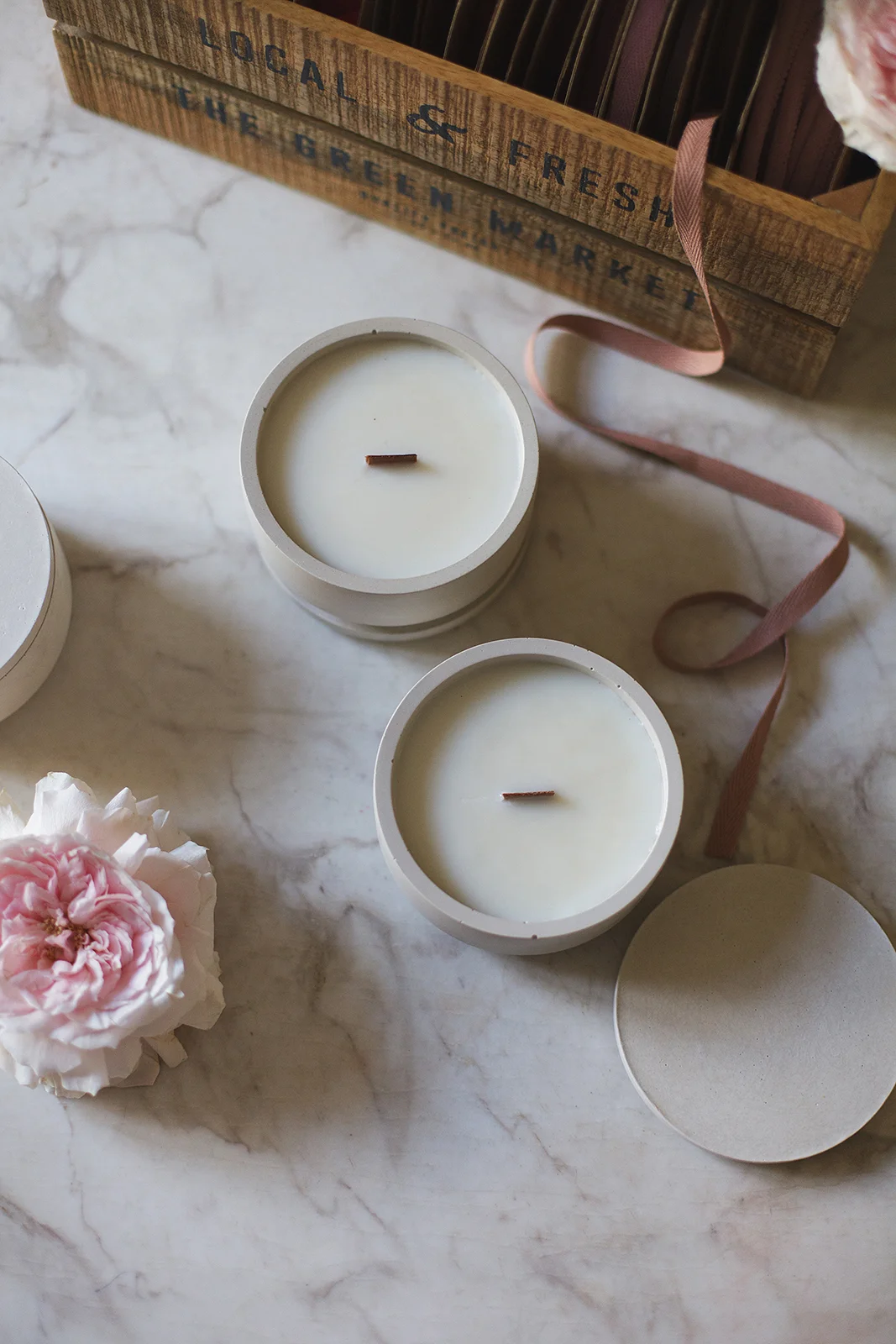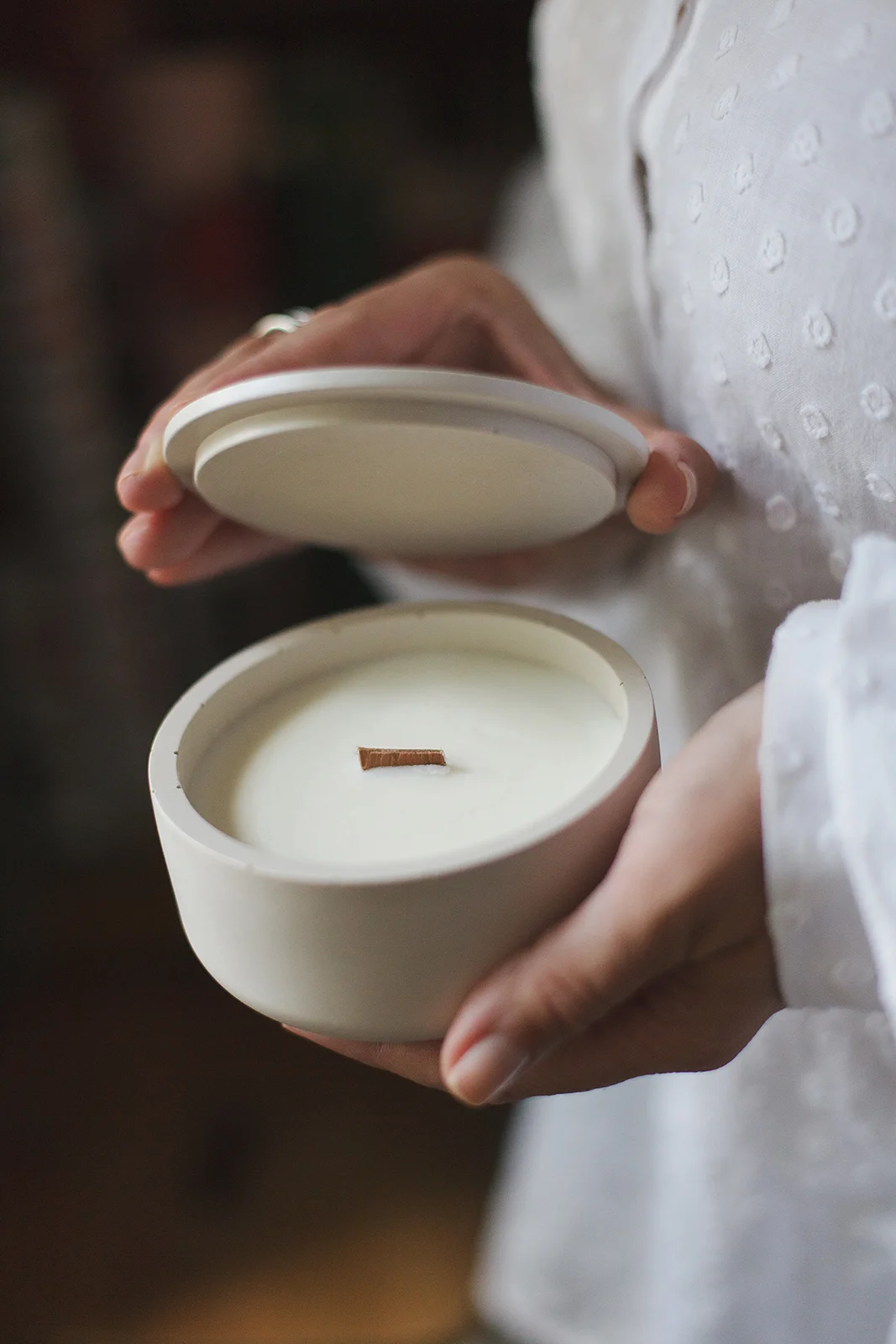 Соевая свеча ‘Миндальный Макарон’ в гипсовом кашпо